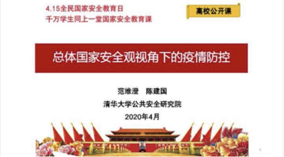 王老师首先带领我们在易班软件上观看了由教育部邀请公共安全领域专家、中国工程院院士范维澄教授主讲《总体国家安全观视角下的疫情防控》高校公开课。“4.15”——全民国家安全教育日,千万学生同上一堂国家安全教育课。通过此次课程的学习,大家对于国家安全都有了更加深刻的理解和认识,每一个中国人都有义务共同爱护我们的国家,保护我们的家园,未来在学习生活中,每个同学都会积极遵守法律法规,保卫自己和国家的安全。