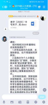 会议开始,王老师首先在群里发布关于宿州学院暑假社会实践活动的文件。然后介绍宿州学院暑假社会实践活动。她强调,每个同学都必须参加,而且要3到8人之间组成团队。时间为7月到8月。然后王老师告诉同学们,我们可以通过学习习近平总书记五四寄语精神、《习近平与大学生朋友们》系列文章,结合个人实践活动讲述动人故事。还可以围绕疫情防控、复工复产、脱贫攻坚、乡村振兴,记录参与实践的亲身感受,展示当代中国青年的责任担当和不畏艰险、冲锋在前、真情奉献的精神风貌。也可以围绕“返家乡”实践主题,以“受教育、长才干、作贡献”为指引,阐述个人在投身火热的社会实践过程中的心得、体会、感想、收获和贡献等。