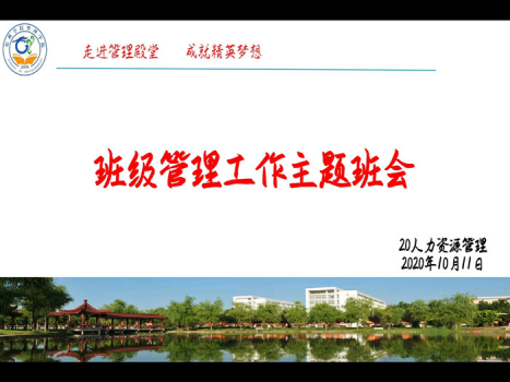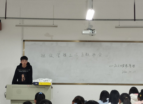 为更好地进行班级管理工作、提升同学们的学习体验、增强班级凝聚力,20人力资源管理班于2020年10月11日晚上7时在实训楼C210召开班级管理工作主题班会。本次班会由辅导员王思惠指导、副班长李睿智主持、班长沈玮洁作补充,20人力资源管理班全体同学参加。