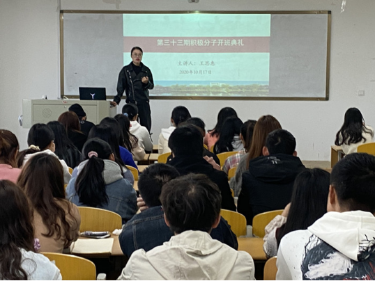 为加强入党积极分子的党性意识,深化党的基本理论的教育,10月17日上午8:00,学院党总支于实训楼C210召开第三十三期入党积极分子培训班开班典礼。会议由人力资源管理学生党支部书记王思惠主持,全体第三十三期入党积极分子参加。