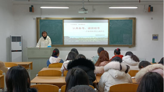 为促进考风考纪建设,树立诚信意识,营造积极向上的学习氛围,12月31日下午,20级旅游管理班应学院相关部署安排在实训楼C102教室召开“认真备考,诚信迎考”严肃考风考纪主题班会。辅导员巩艳艳主持本次班会,全体同学参加。