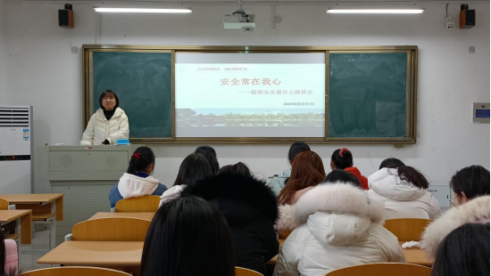 为加强学生安全意识,教育学生珍爱生命,学会保护自己,过一个安全、文明、健康、快乐的假期,12月31日下午,20旅游管理班在实训楼C102教室召开“安全常在我心”假期安全教育主题班会。本次班会由辅导员巩艳艳主持,全体同学参加。