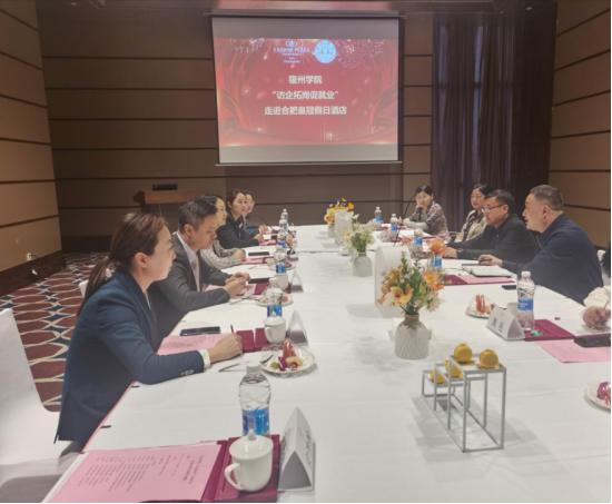 在两天的走访过程中,蔡若愚一行先后与安徽绿城物业管理有限公司副总经理薛功、合肥皇冠假日酒店总经理王薇、合肥元一希尔顿酒店人力资源总监王瑾等围绕实习就业、校企合作、人才培养等展开了全面的交流,同时对企业一直以来给予学院实习工作的支持与配合表示了感谢。韩传龙对学院专业发展、毕业生情况、校企合作进行了介绍,表示此次“访企拓岗促就业”专项行动是强化校企合作,促进供需精准对接,实现校企互助共赢的重要途径,并就学院即将举行的校企合作月向各企业发出了诚挚的邀请。同时,校企双方就如何提高学生对本专业的就业认知,提高毕业生在合作企业的留职率,进行了深入的探讨,并表示校企双方将共同努力,深化校企合作,搭建优质平台,提供优质岗位,拓展就业空间。