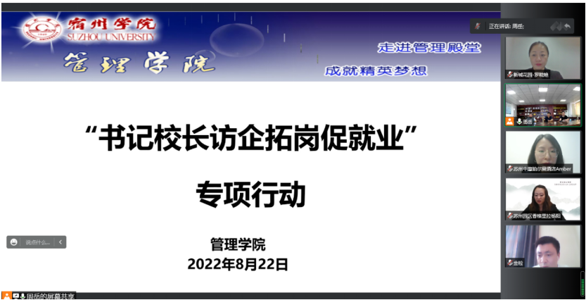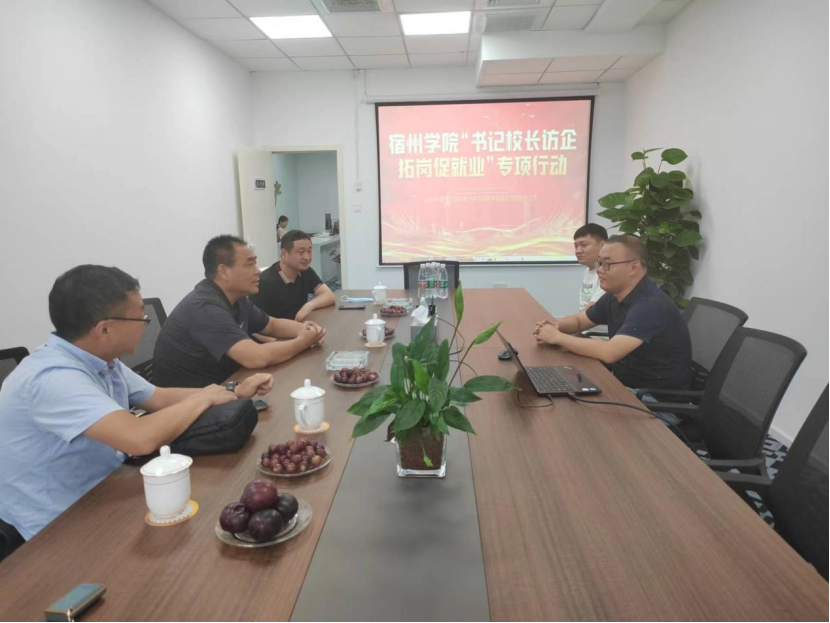 为扎实推进“访企拓岗促就业”专项行动,进一步促进校企合作、强化供需对接,巩固和拓展毕业生就业渠道,8月22日,宿州学院党委委员、副院长李亮带队,采取线上线下相结合方式开展访企拓岗活动。管理学院党委书记蔡若愚、党委副书记、院长韩传龙,党委副书记张增林等陪同调研。
