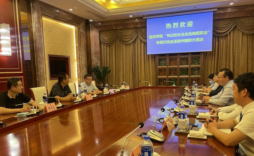 随后,李亮一行实地走访了宿州国际大酒店和宿州璞悦房地产开发有限公司。座谈会上,李亮表示宿州学院以服务地方经济社会发展为导向,希望能与企业在人才培养、学生就业等方面开展密切合作,使我校的人才培养体系对接地方人才需求,为推动双方高质量发展做出贡献。