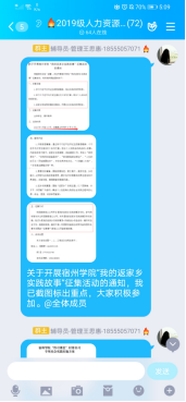 为深入学习贯彻习近平新时代中国特色社会主义思想和党的十九大精神,围绕立德树人根本任务,将“三全育人”融入社会实践教育全过程,引导青年学生走出校园,深入社会、服务农村,助力乡村振兴与脱贫攻坚,为新时期农业农村发展和社会主义新农村建设贡献力量,因此在2020年6月27日,19人力专升本1班、2班、19人力、19酒管(对口)1班、2班在线上开展关于“2020年暑假社会实践”主题班会,此次班会由辅导员王思惠老师线上主持,全体同学参加。