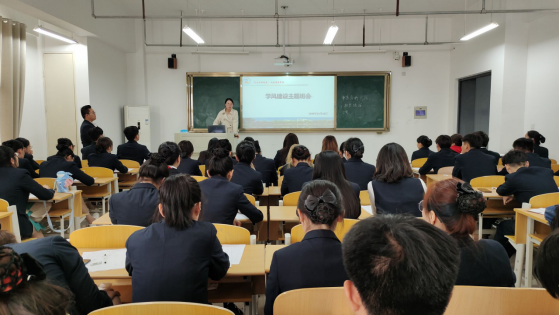 会议开始,王老师首先介绍学风风的好坏对班级的建设,对学生的成长都有很大的影响。良好的学风能给学生带来有利于学习、有利于生活的环境,能使学生精神振奋,班级正气上升;不好的学风会使他们受到不健康风气的熏染而消极不思进取,使整个集体涣散。班会上同学们紧紧围绕“我们需要什么样的班风、学风”、“班风、学风建设的内涵是什么”、“怎样建设优良的寝风、班风、学风”等开展主题发言和讨论,同学们自由发言。最后王老师做出总结,她要求同学们要抓住学校学风建设年的契机,认识到学风建设是有利于广大学生成长、成才的重要举措,号召同学们人人争当学风建设的典范,从我做起,从学习的点点滴滴做起,从认真上好每节课开始,加强班风和寝室风气的建设,加强基础性工作的管理,养成良好的学习、生活习惯。也希望这次班会能够在各方面的认识得到提高!