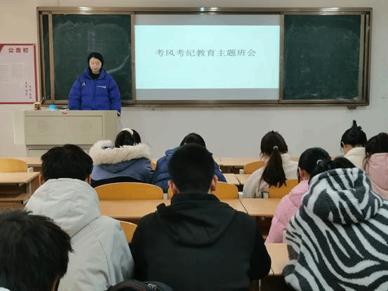 为响应学校号召,积极加强考风考纪教育,加强学生对诚信应考的认识,组织学生统一进行学习,从思想和管理两方面规范学生文明考试,端正学生们动机,提高同学们的学习热情,以加强同学们的自觉性,树立良好的校风、学风、班风。各班积极响应学院号召,于2021年12月6日开展了“严肃考风考纪”主题班会。本次班会由辅导员武雪婷老师主持,全体同学共同参与。
