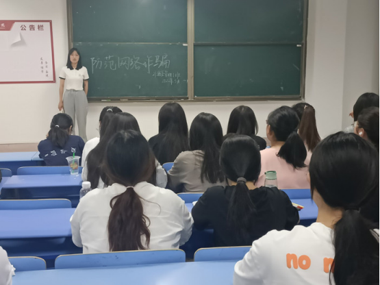 会上,刁盈盈向大家介绍了防范网络诈骗的重要性。随着社会的发展,信息技术的进步,由其带来的网络方面的一系列问题也浮出了水面,同学们也更应该防范网络诈骗。其次,刁盈盈向大家介绍网络诈骗的各种手段和花样。不法分子抓住大众贪利惧损、花钱消灾等不同心理弱点,诈骗的手段和方法越来越多,借助于手机和网络等通信工具和现代的网银技术实施的非接触式的诈骗手段,给人民群众造成了很大的损失。天上不会掉馅饼,同学们一定不能留有侥幸心理,同学们应该时刻紧绷防范之弦,远离诈骗之害。最后,刁盈盈向大家强调了防止网络诈骗的方式。防范网络诈骗,最根本的还是要提高自身的防范意识。同学们应该在生活中做到不轻信,不透露,不转账。
