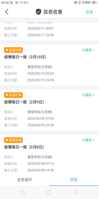 于2月7号开始在今日校园app中,王思惠老师每日发布”疫情每日一报”并督促班级同学每日按时完成,来确保每个人的安全状态和信息的准确性。支部成员每日及时汇报健康情况,力争做到无发热无外出,健康平安,成为“疫情的防护者”和“健康的守护者”。除“疫情每日一报”以外,班级认真学习如何正确预防新型冠状病毒等知识要求全体学生“要听从学校安排,有效落实防疫工作各项要求,保障生命安全和身体健康,同心协力,共克时艰,坚决打赢疫情防控阻击战!