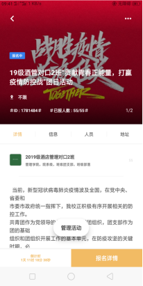 此次特别主题团日活动开展后,管理学院团总支要求各班级结合自身实际,积极开展形式多样的主题团日活动,各班级积极响应,精心组织。充分发挥了基层团组织运用网络新媒体开展工作的创新精神,激发了广大青年团员打赢防控阻击战的强大精神力量。相信在全国人民的共同努力下,我们一定很快能打赢这场疫情防控阻击战。