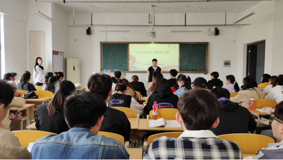 习近平总书记出席会议并发表重要讲话,深刻阐述了开展党史学习教育的重大意义,深刻阐明了党史学习教育的重点和工作要求,对党史学习教育进行了全面动员和部署,为开展好党史学习教育指明了方向,提供了根本遵循。因此19人力资源管理班在2021年4月23日实训楼c105开展“学习百年党史,凝聚青春力量”团日活动。此次活动由辅导员王思惠老师主持,19人力资源管理班全体同学参加。